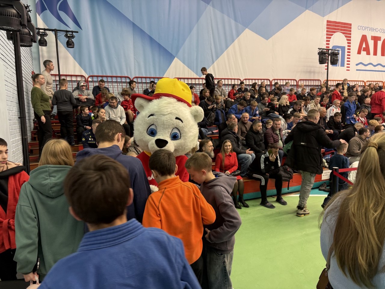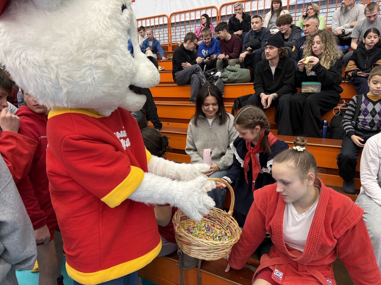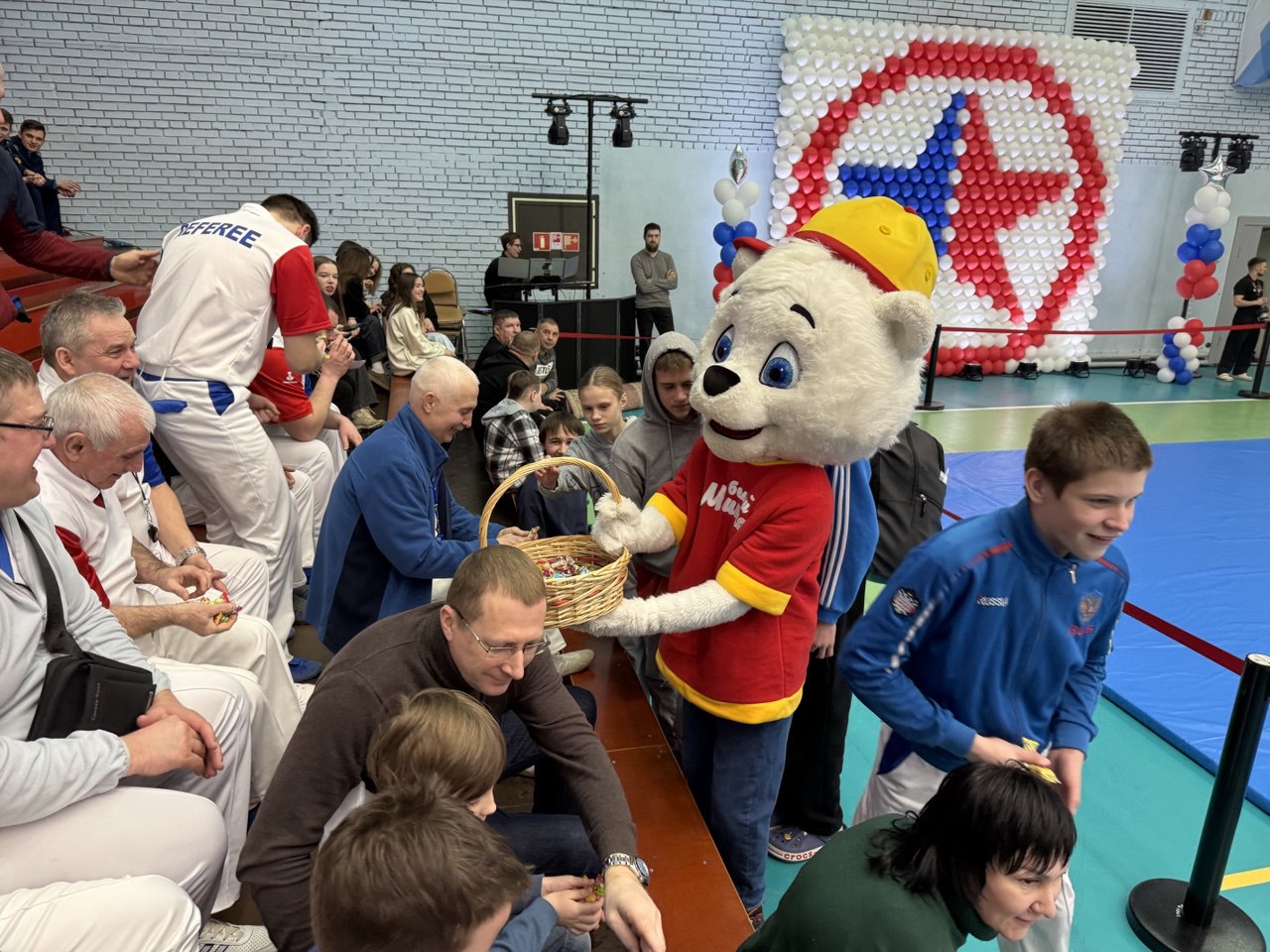 От нашей компании участникам были вручены памятные подарки, включающие в себя здоровую и полезную продукцию. «Белый мишка» порадовал юных спортсменов и тренеров перед началом соревнований, угостив их конфетами.